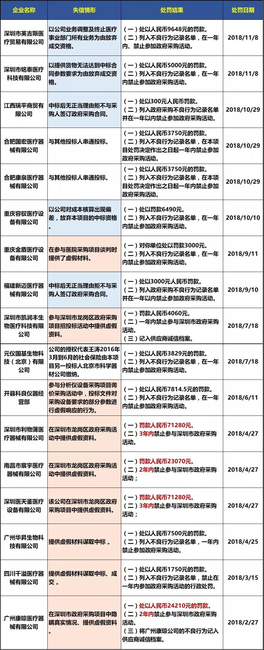深圳市利物蒲醫(yī)療器械有限公司和深圳醫(yī)天鑒醫(yī)療設(shè)備有限公司在“政府采購(gòu)項(xiàng)目中提供虛假資料”的失信行為可謂是正中雷區(qū),最終被罰了個(gè)慘。