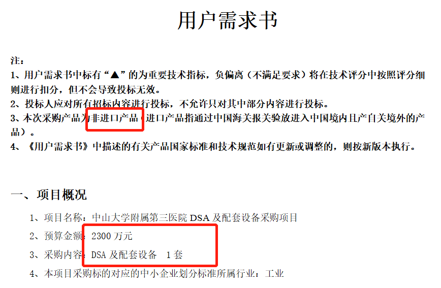 例如本次中山大學附屬第三醫(yī)院采購的“數(shù)字減影血管造影X射線機(DSA)”,這類設備一直處于嚴重依賴進口狀態(tài),很少有醫(yī)院采購時會明確拒絕進口產(chǎn)品投標,本次卻直接拒絕進口產(chǎn)品入場,無疑給足了國產(chǎn)品牌底氣。