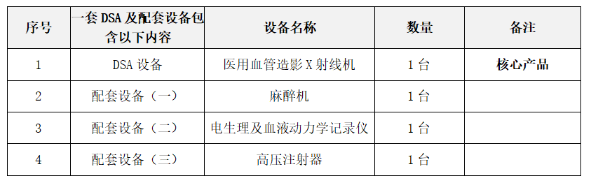 (注:本項目上述清單中“醫(yī)用血管造影X射線機”為本項目核心產(chǎn)品。投標人提供核心產(chǎn)品品牌均相同且通過資格審查、符合性審查的不同投標人參加同一合同項下投標人,按一家投標人計算,評審后得分最高的同品牌供應商獲得中標人推薦資格,其他同品牌投標人不作為中標候選人。經(jīng)評委會審查,參與投標的核心產(chǎn)品品牌少于3個的,本項目作廢標處理。)
