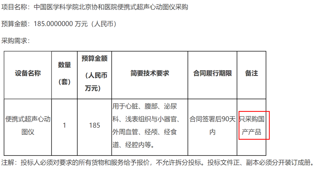 以北京協(xié)和醫(yī)院為例,近年來大批醫(yī)療設備采購訂單,都開始明確只采購國產(chǎn)產(chǎn)品。