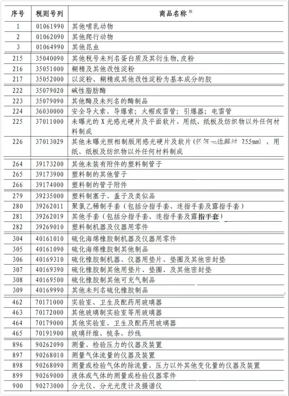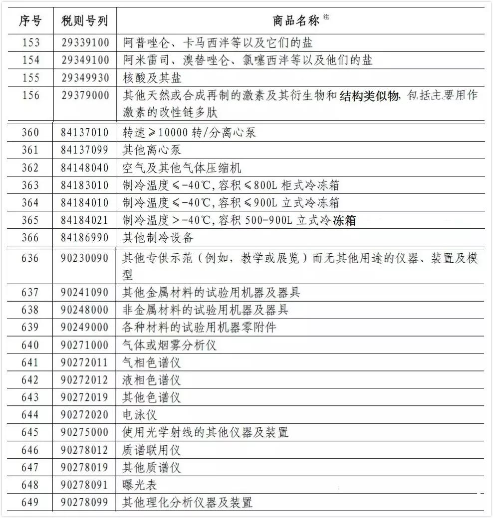 附件4所涉及的生物試劑和實驗室常用物品(加征5%的關稅)