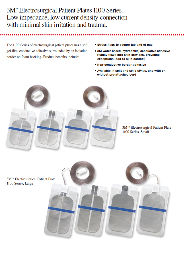 美國3M電刀負極板1100系列具有低阻抗、低電流密度連接、最大程度降低對病人皮膚的刺激以及損傷。