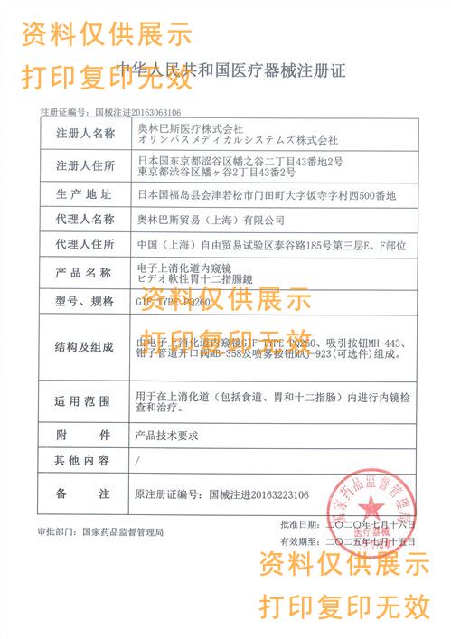 該產品用于大腸的觀察、診斷、攝影與治療。